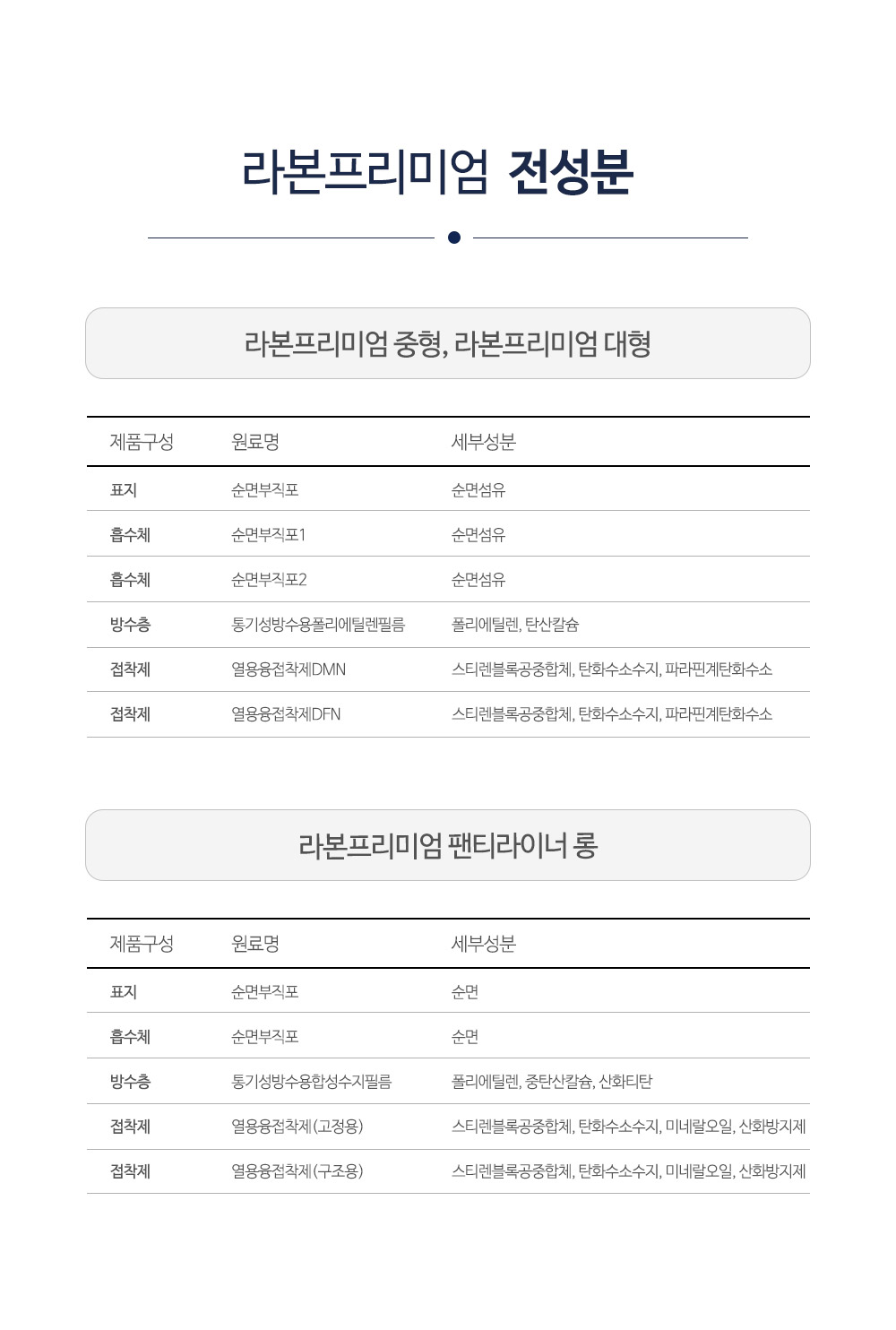 라본 프리미엄 유기농 함량 : 80~82% 프리미엄 생리대